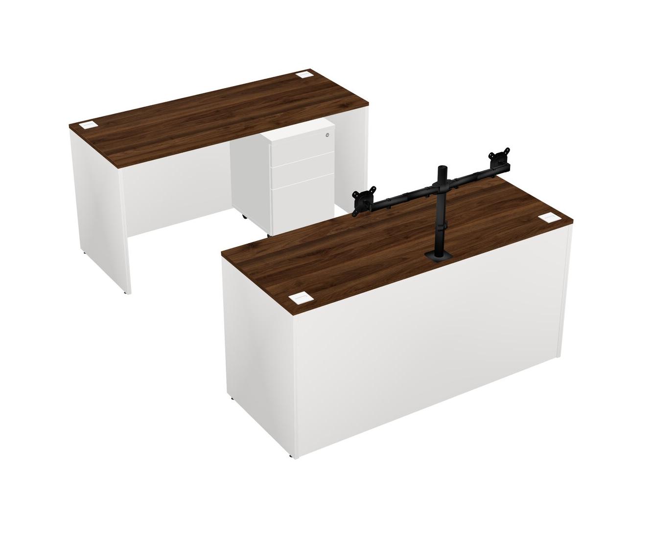 Office Parallel Desk Credenza Desk + Wooden Mobile Drawers + Monitor Arm (double Arms)