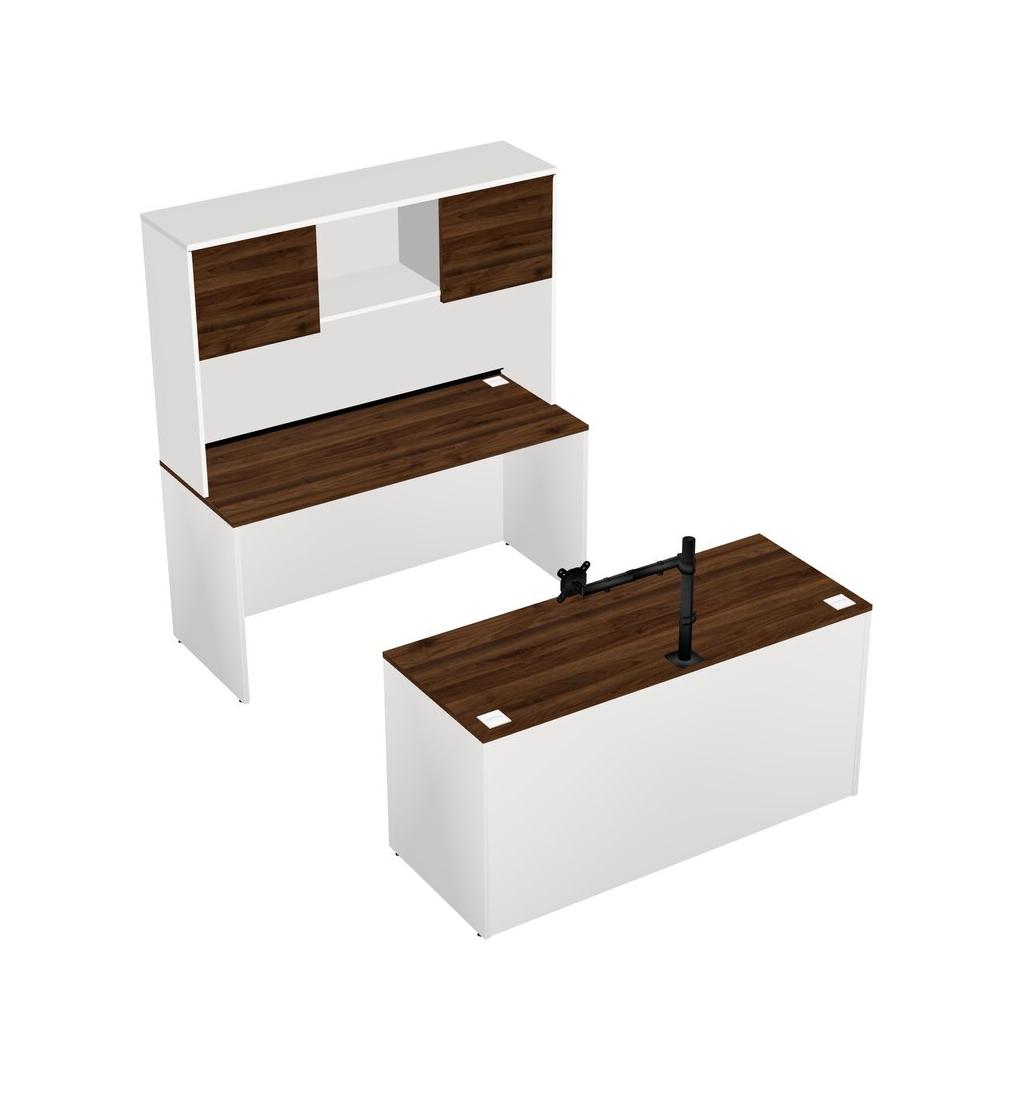 Office Parallel Desk Credenza Desk + Hutch + Monitor Arm (single Arm)