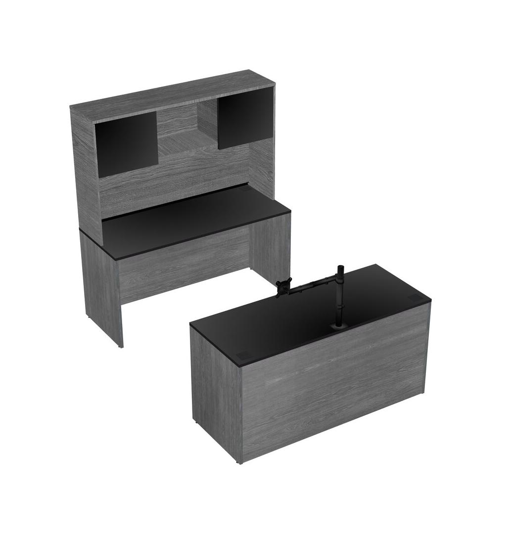 Office Parallel Desk Credenza Desk + Hutch + Monitor Arm (single Arm)