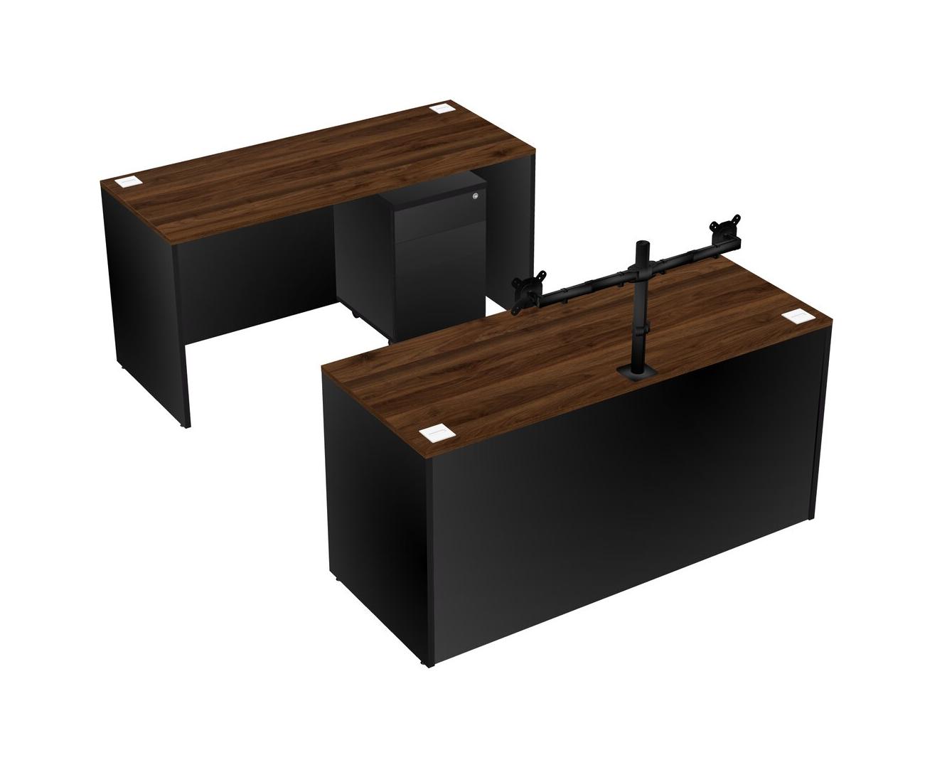Office Parallel Desk Credenza Desk + Wooden Mobile Drawers + Monitor Arm (double Arms)