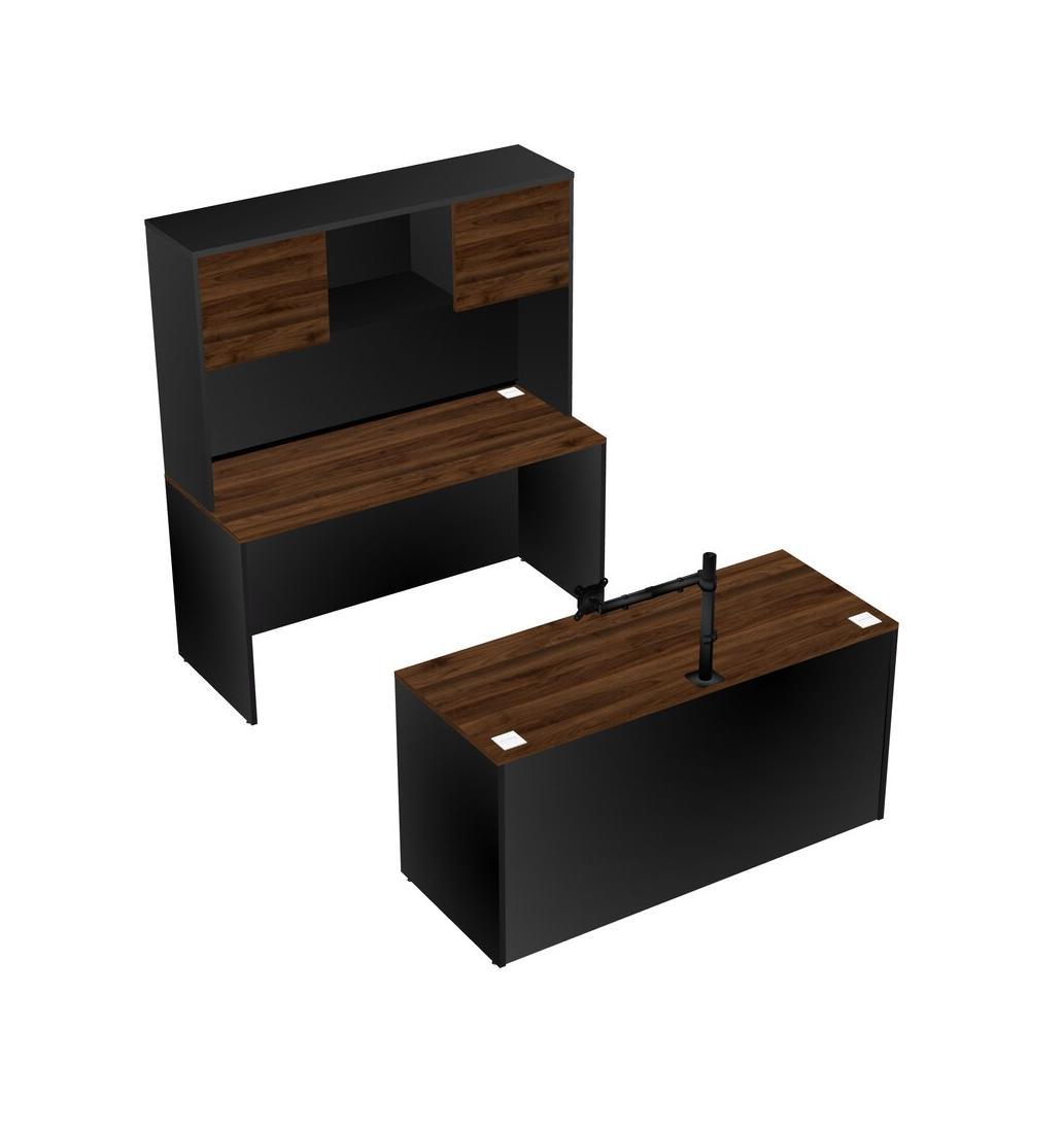 Office Parallel Desk Credenza Desk + Hutch + Monitor Arm (single Arm)