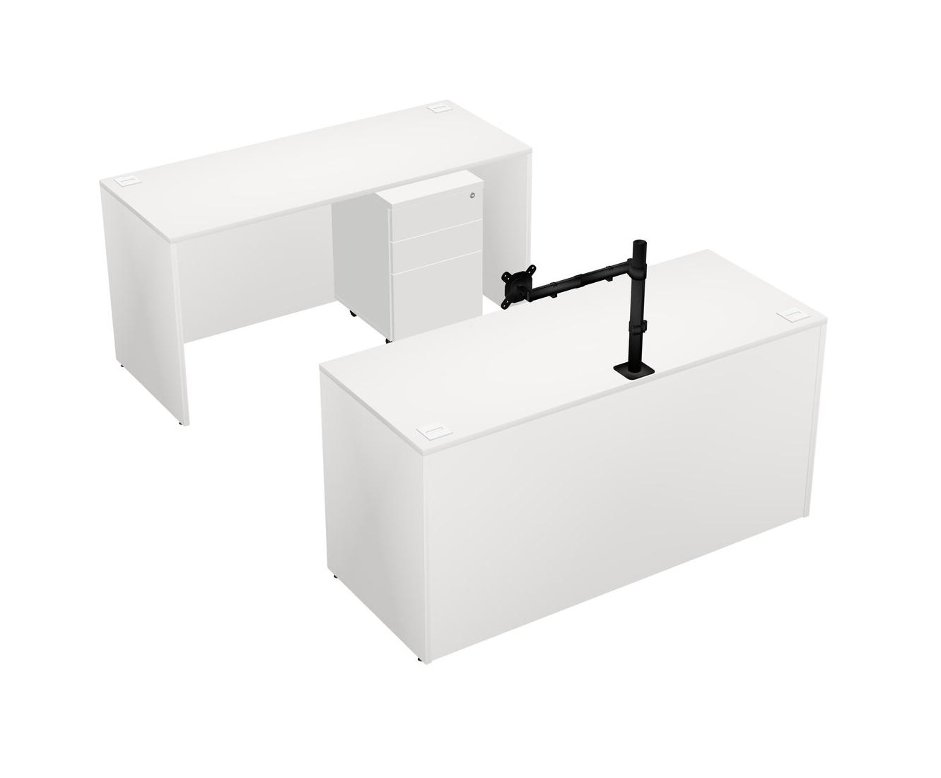 Office Parallel Desk Credenza Desk + Wooden Mobile Drawers + Monitor Arm (single Arm)