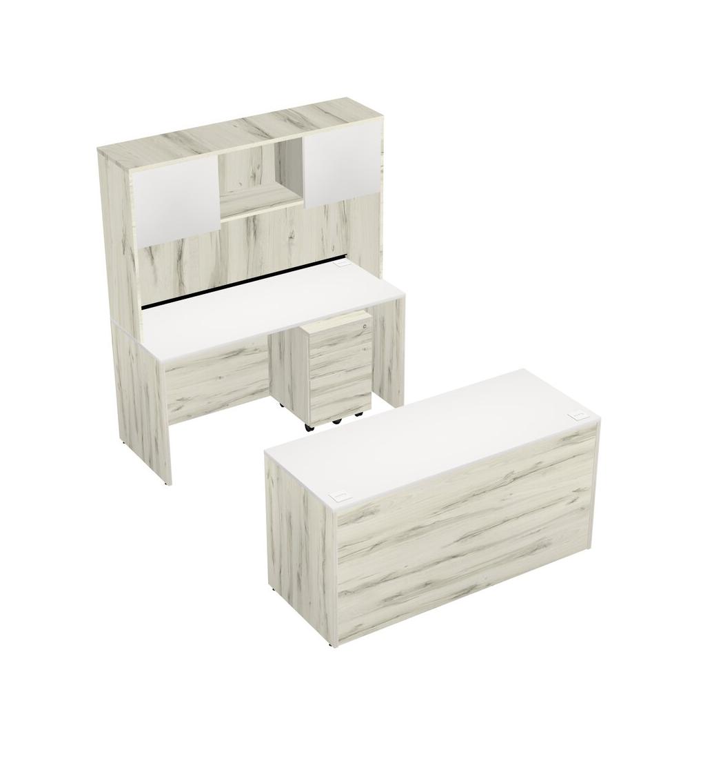Office Parallel Desk Credenza Desk + Wooden Mobile Drawers + Hutch