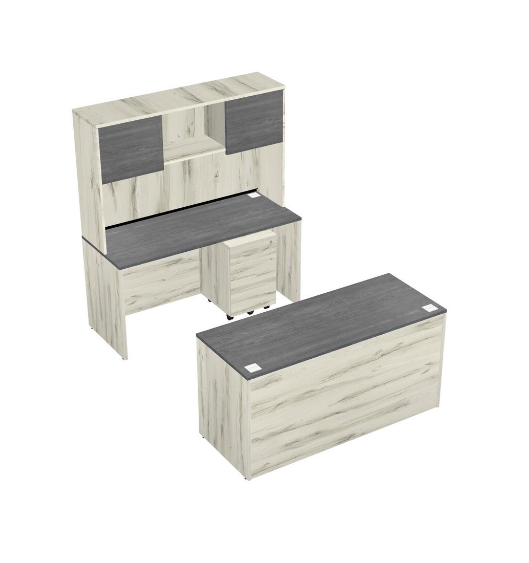Office Parallel Desk Credenza Desk + Wooden Mobile Drawers + Hutch