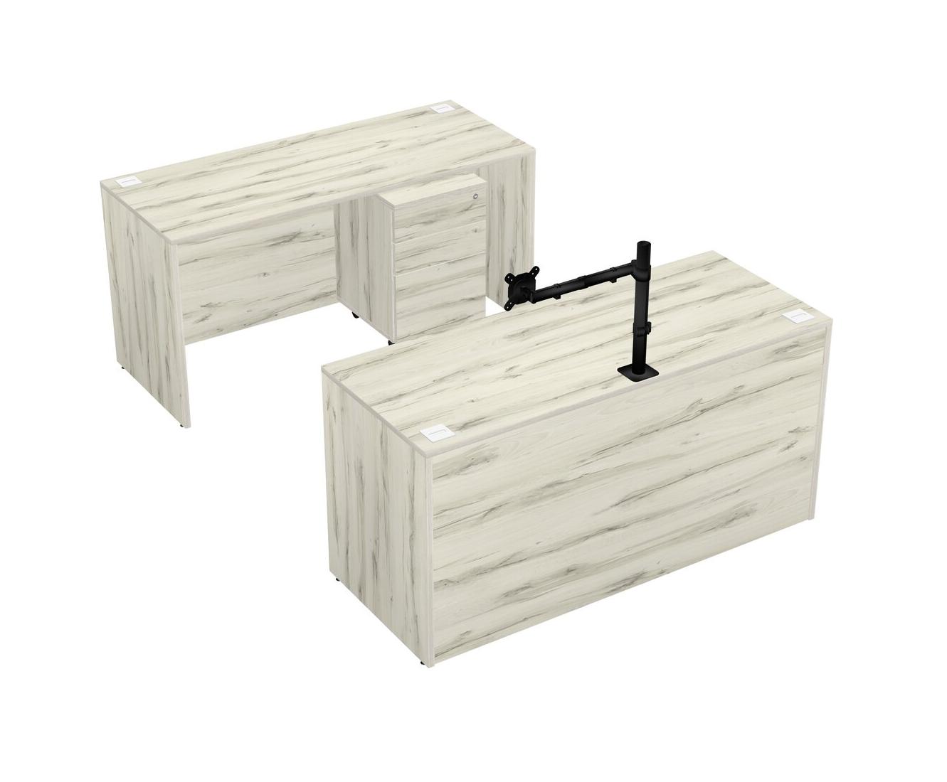 Office Parallel Desk Credenza Desk + Wooden Mobile Drawers + Monitor Arm (single Arm)