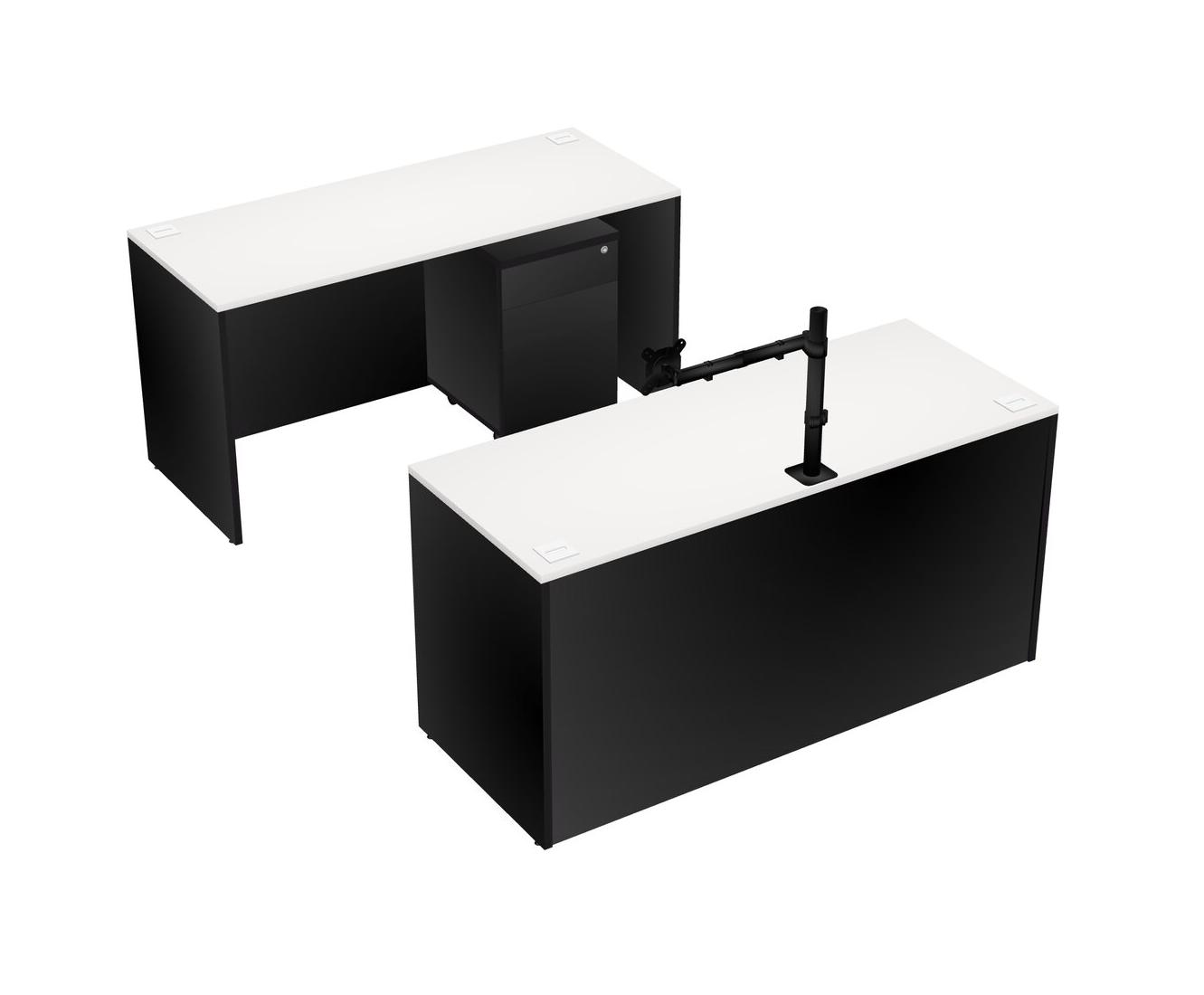 Office Parallel Desk Credenza Desk + Wooden Mobile Drawers + Monitor Arm (single Arm)