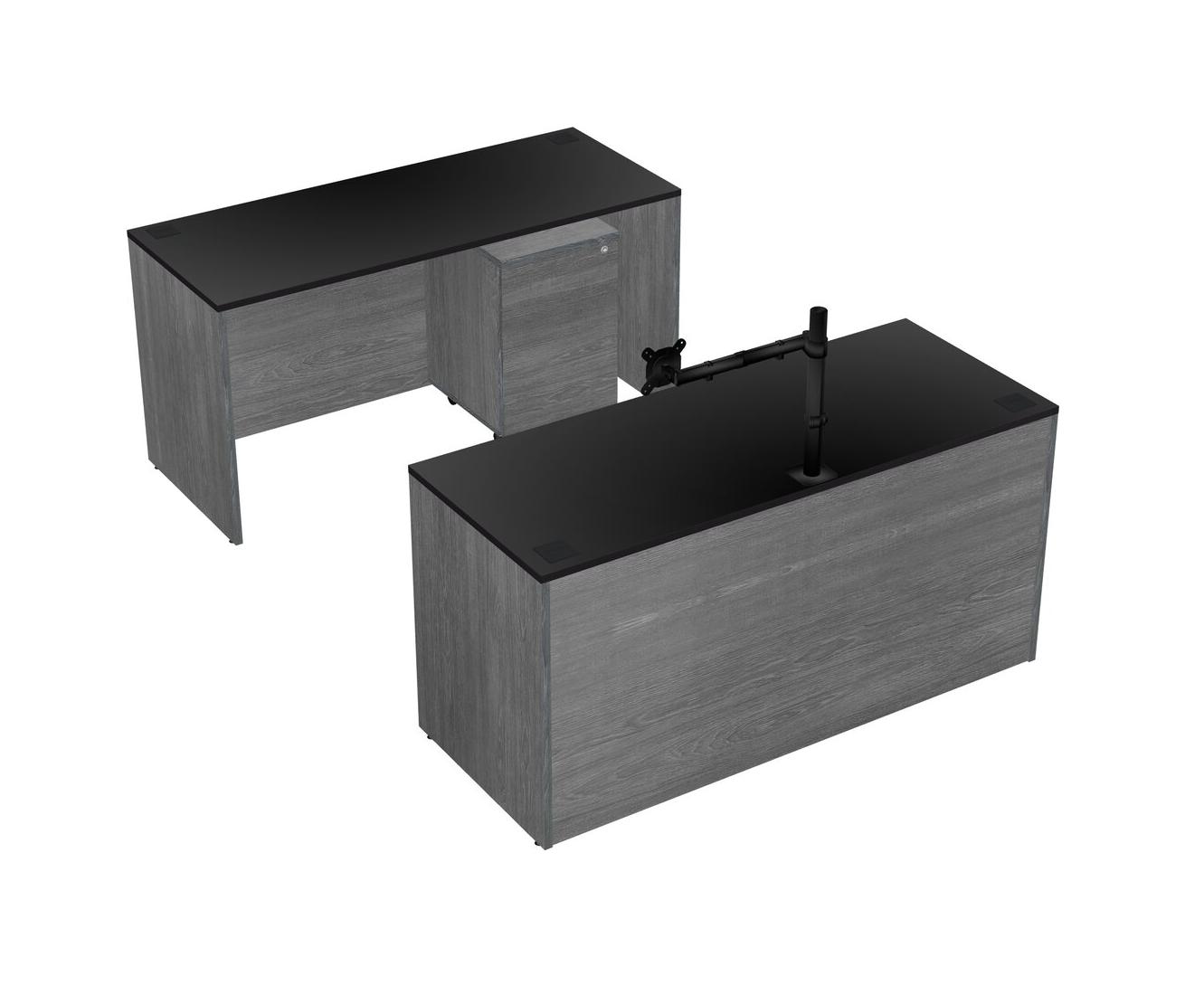 Office Parallel Desk Credenza Desk + Wooden Mobile Drawers + Monitor Arm (single Arm)
