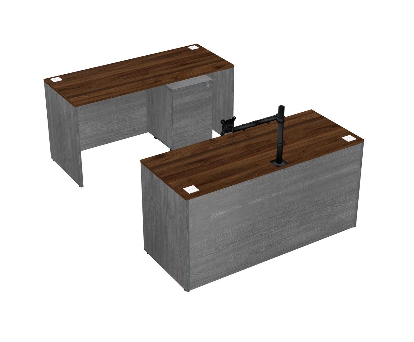 Office Parallel Desk Credenza Desk + Wooden Mobile Drawers + Monitor Arm (single Arm)