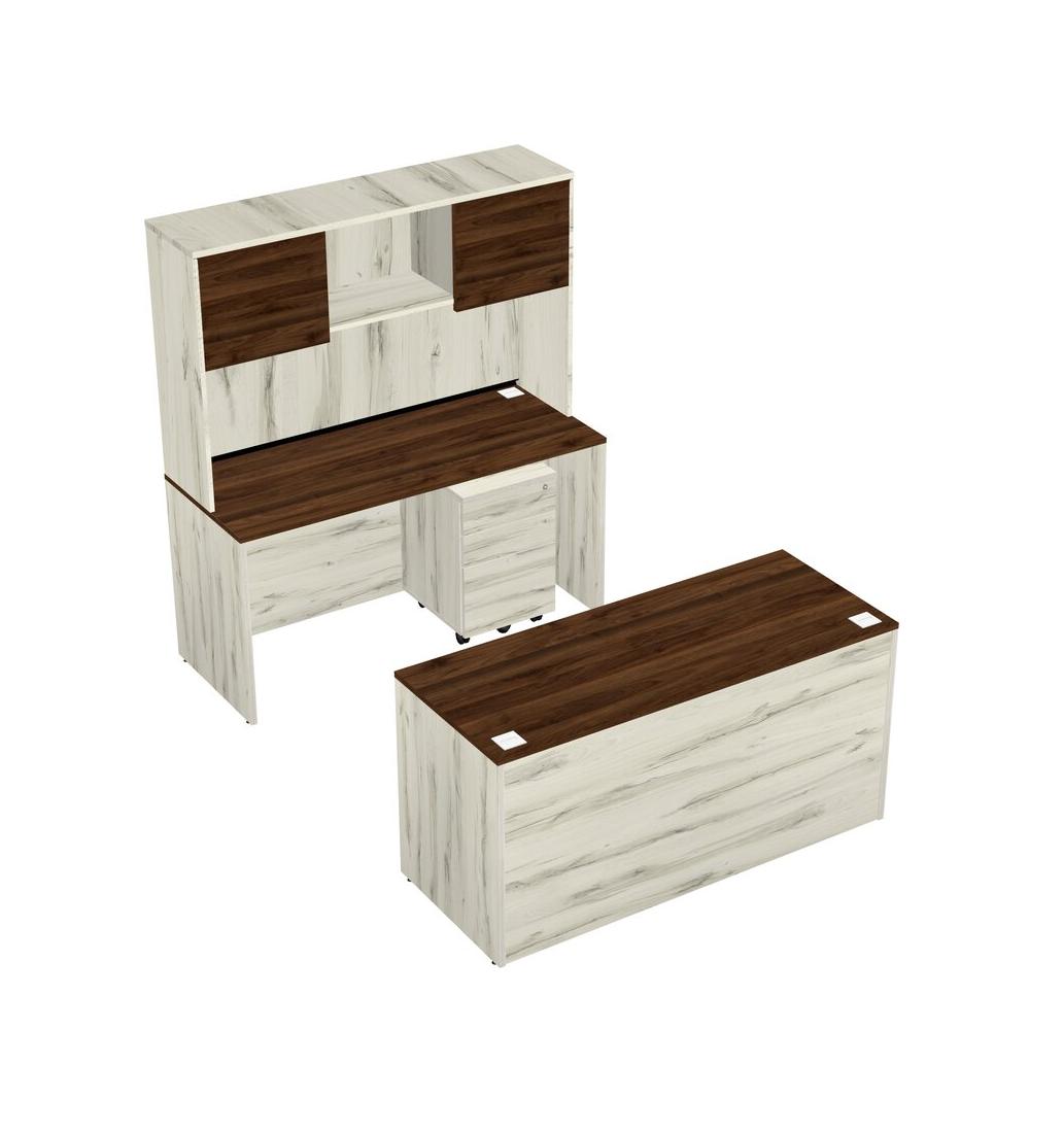 Office Parallel Desk Credenza Desk + Wooden Mobile Drawers + Hutch