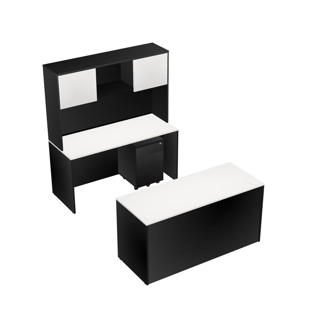 Office Parallel Desk Credenza Desk + Wooden Mobile Drawers + Hutch