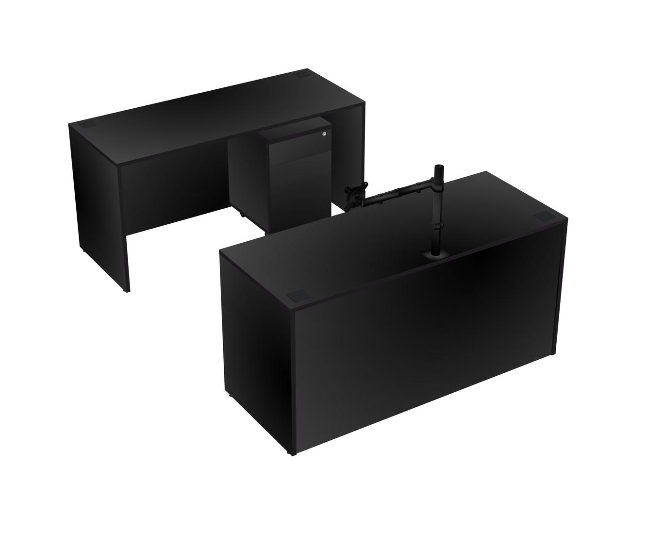 Office Parallel Desk Credenza Desk + Wooden Mobile Drawers + Monitor Arm (single Arm)