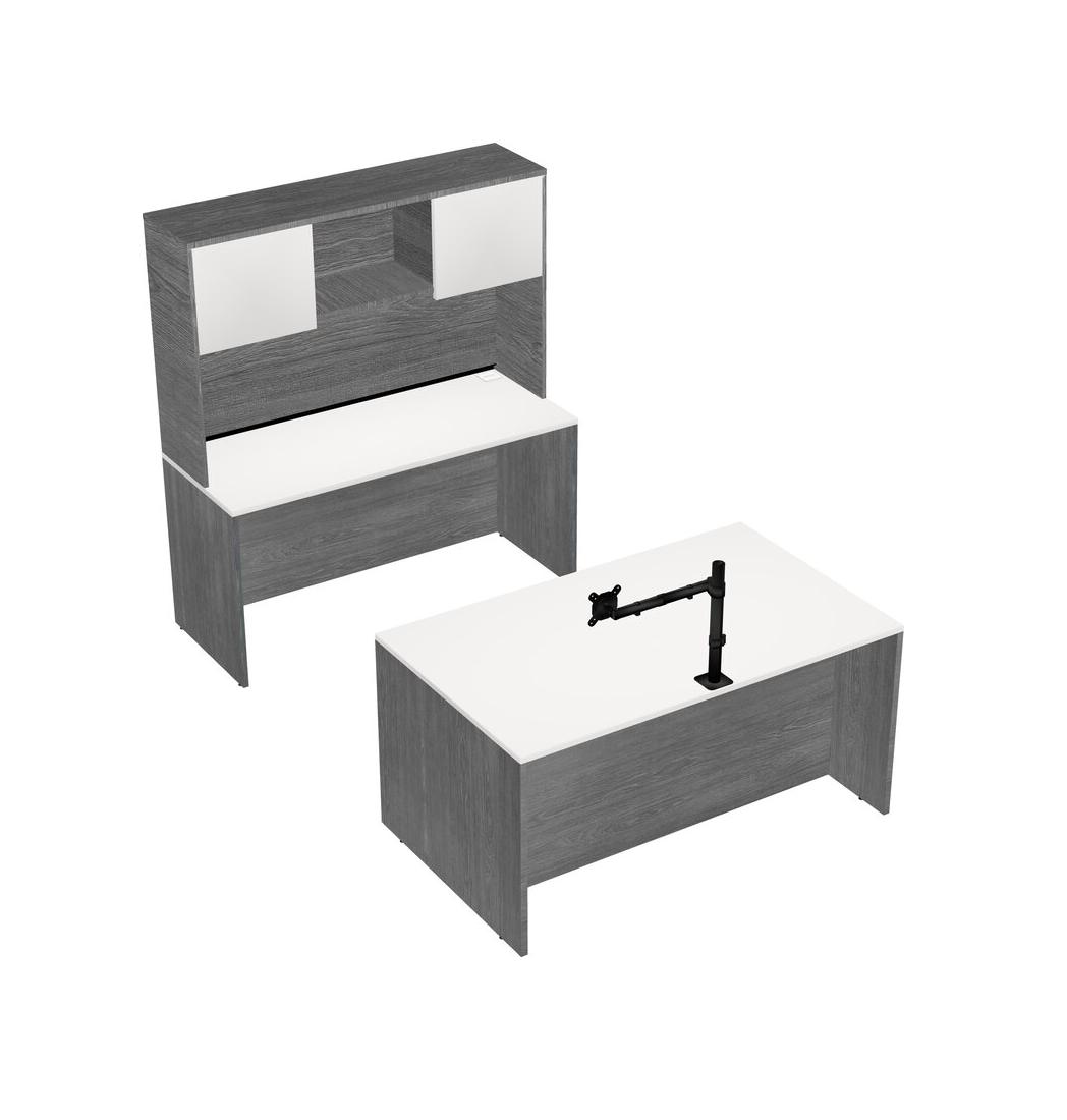 Office Parallel Desk Credenza Desk + Hutch + Monitor Arm (single Arm)