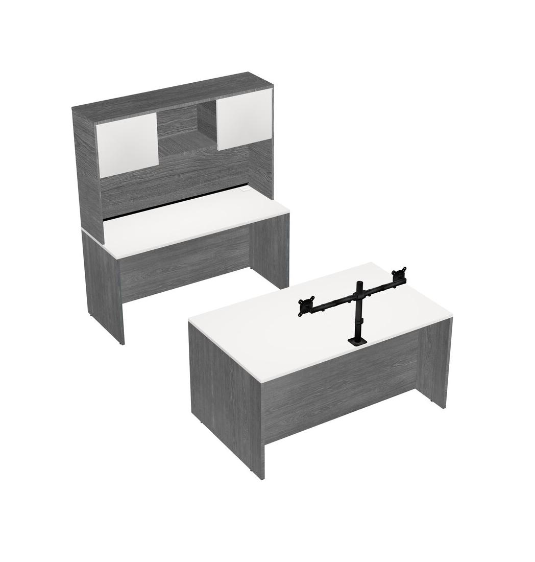 Office Parallel Desk Credenza Desk + Hutch + Monitor Arm (double Arms)