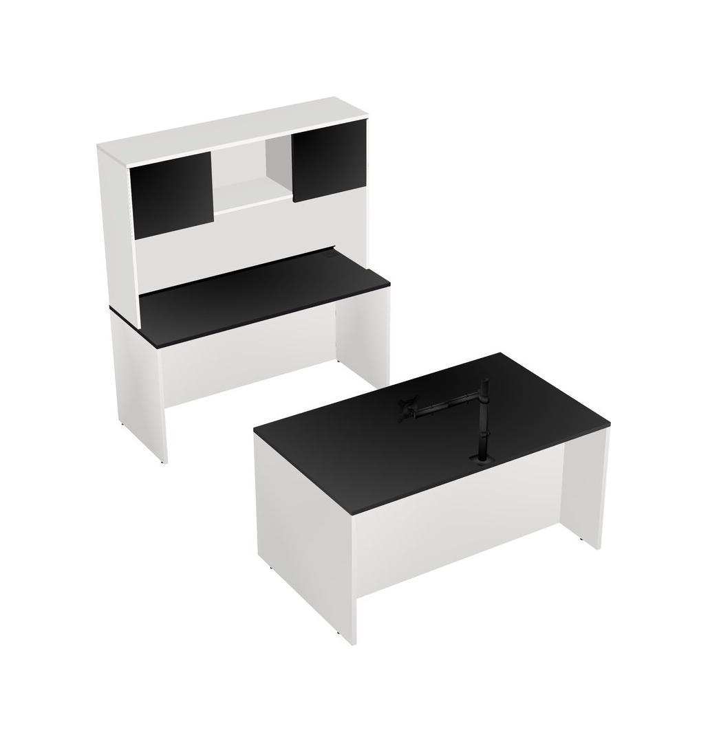 Office Parallel Desk Credenza Desk + Hutch + Monitor Arm (single Arm)