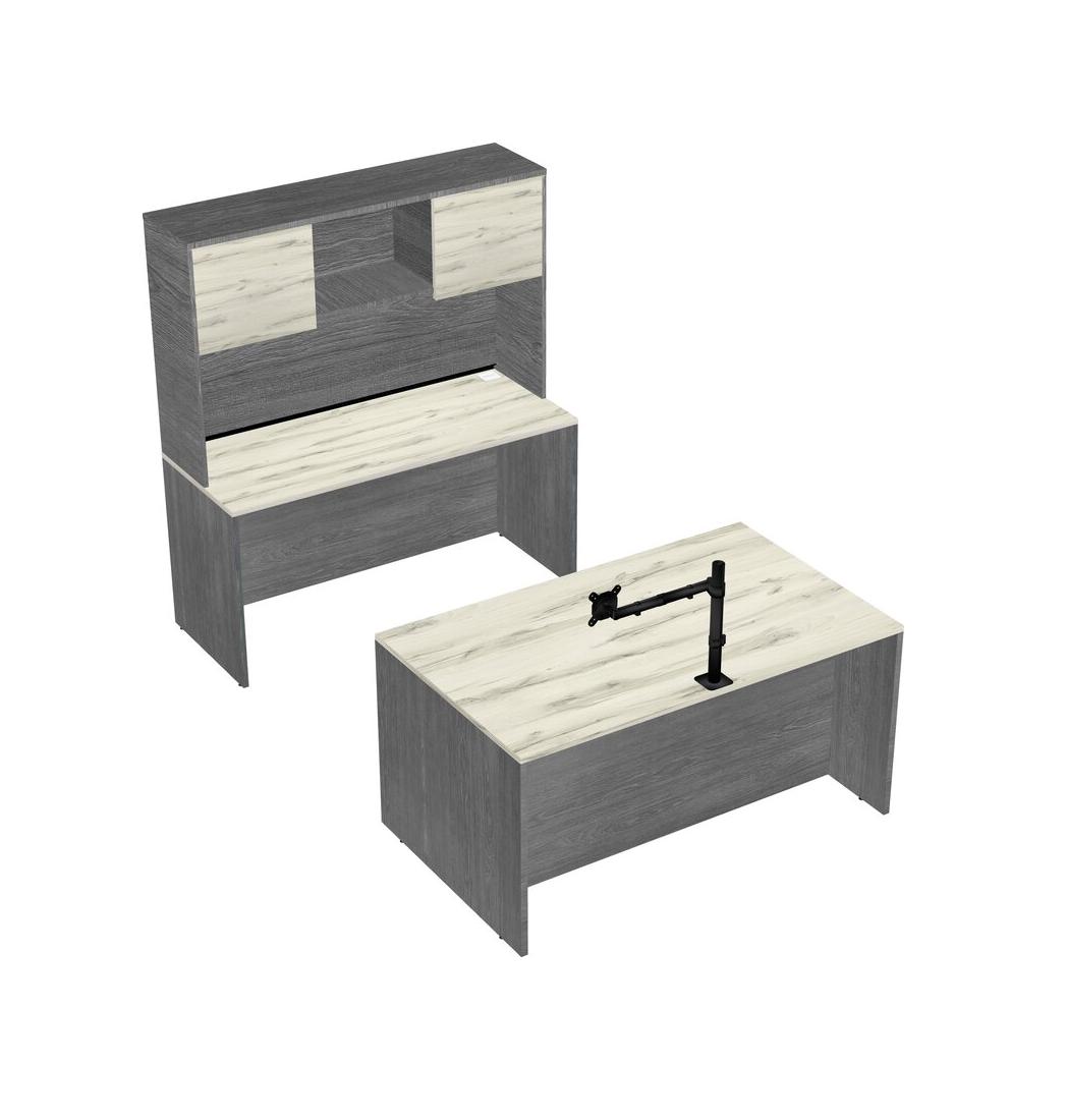 Office Parallel Desk Credenza Desk + Hutch + Monitor Arm (single Arm)