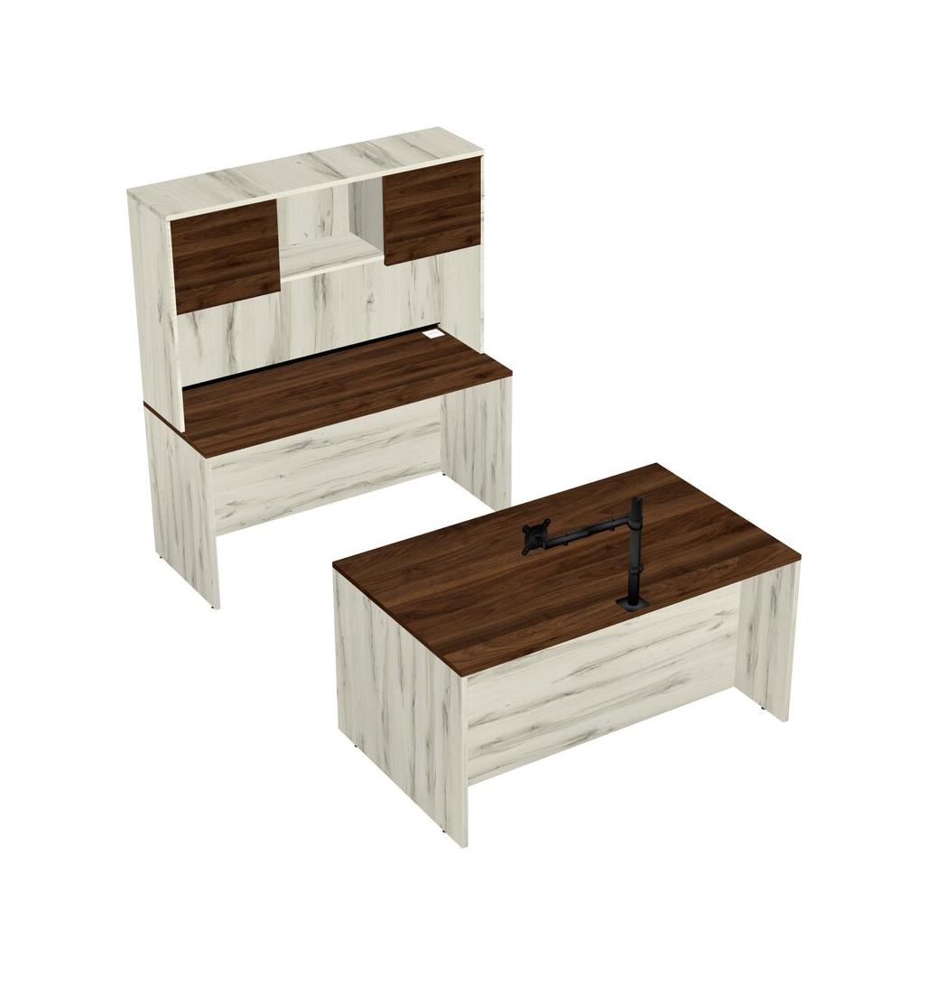 Office Parallel Desk Credenza Desk + Hutch + Monitor Arm (single Arm)