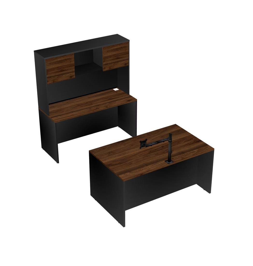 Office Parallel Desk Credenza Desk + Hutch + Monitor Arm (single Arm)