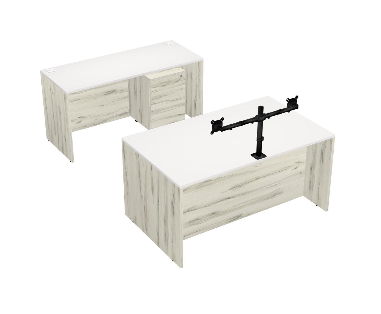 Office Parallel Desk Credenza Desk + Wooden Mobile Drawers + Monitor Arm (double Arms)