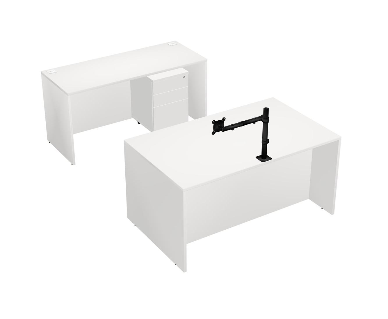 Office Parallel Desk Credenza Desk + Wooden Mobile Drawers + Monitor Arm (single Arm)