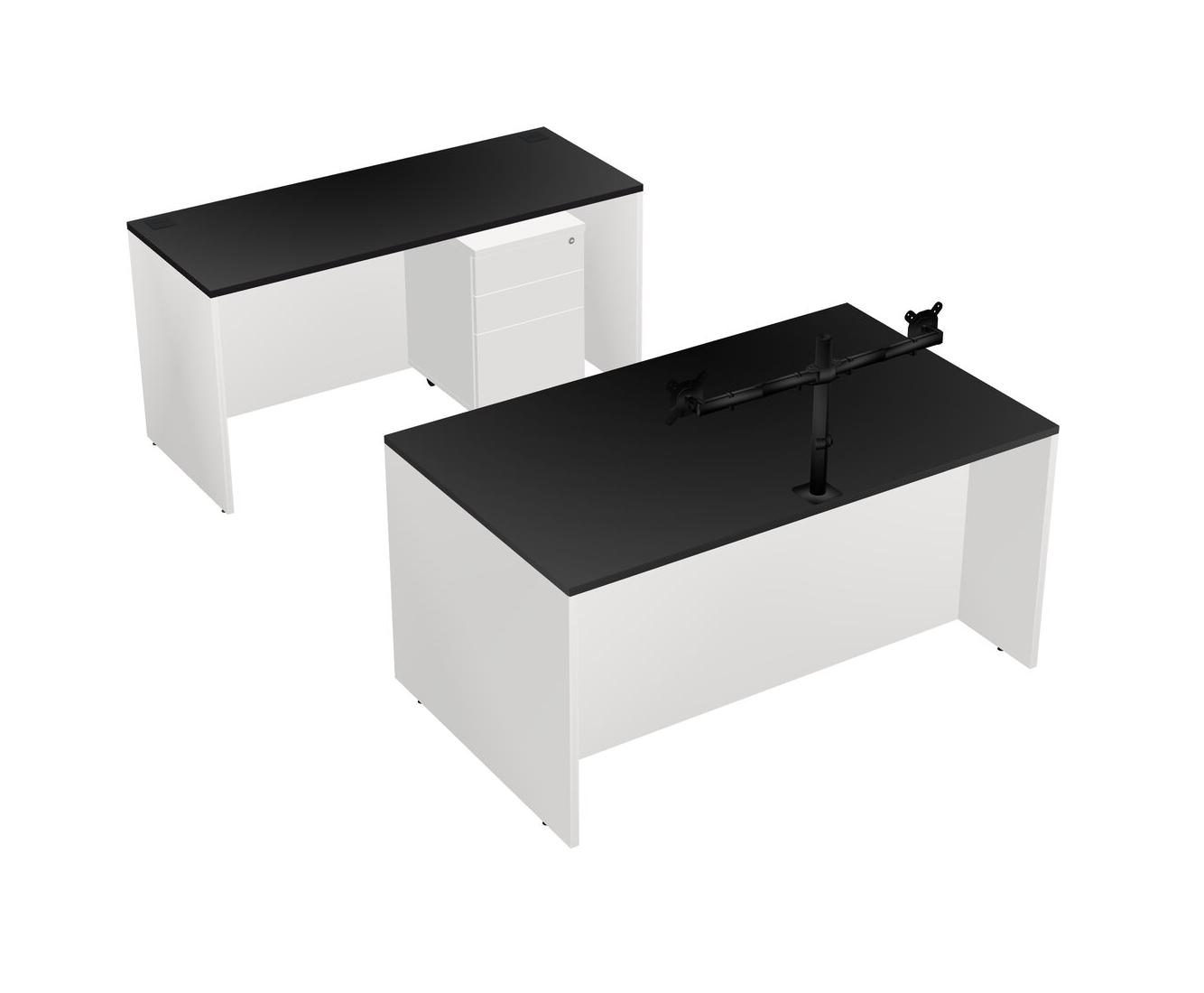 Office Parallel Desk Credenza Desk + Wooden Mobile Drawers + Monitor Arm (double Arms)