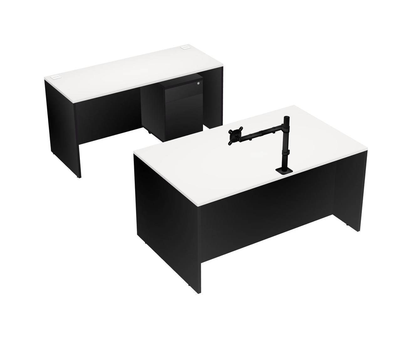 Office Parallel Desk Credenza Desk + Wooden Mobile Drawers + Monitor Arm (single Arm)
