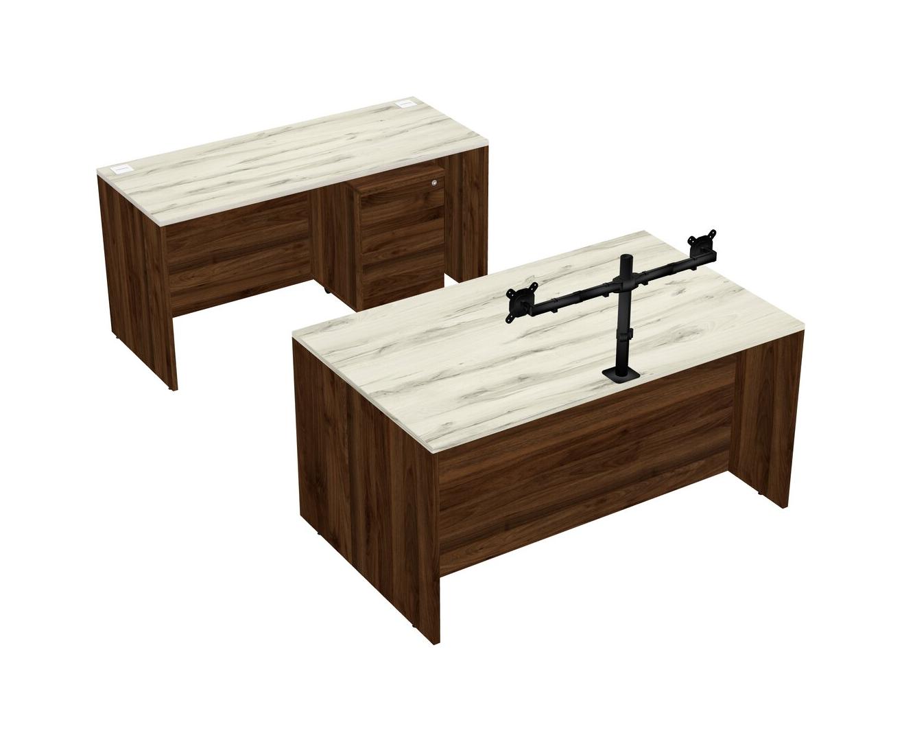Office Parallel Desk Credenza Desk + Wooden Mobile Drawers + Monitor Arm (double Arms)