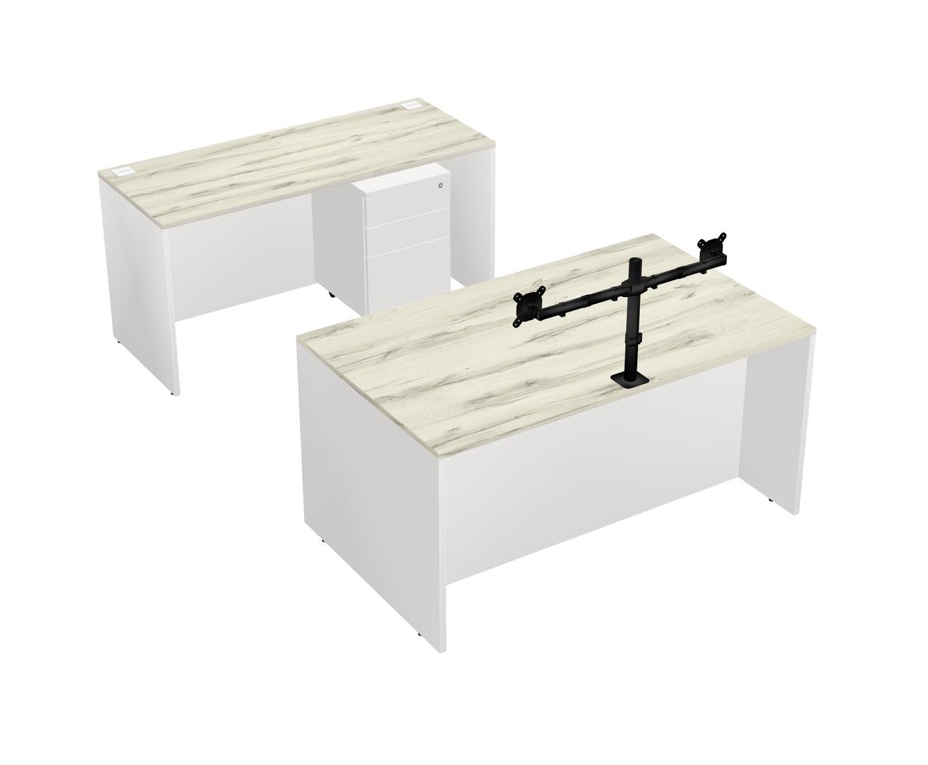 Office Parallel Desk Credenza Desk + Wooden Mobile Drawers + Monitor Arm (double Arms)