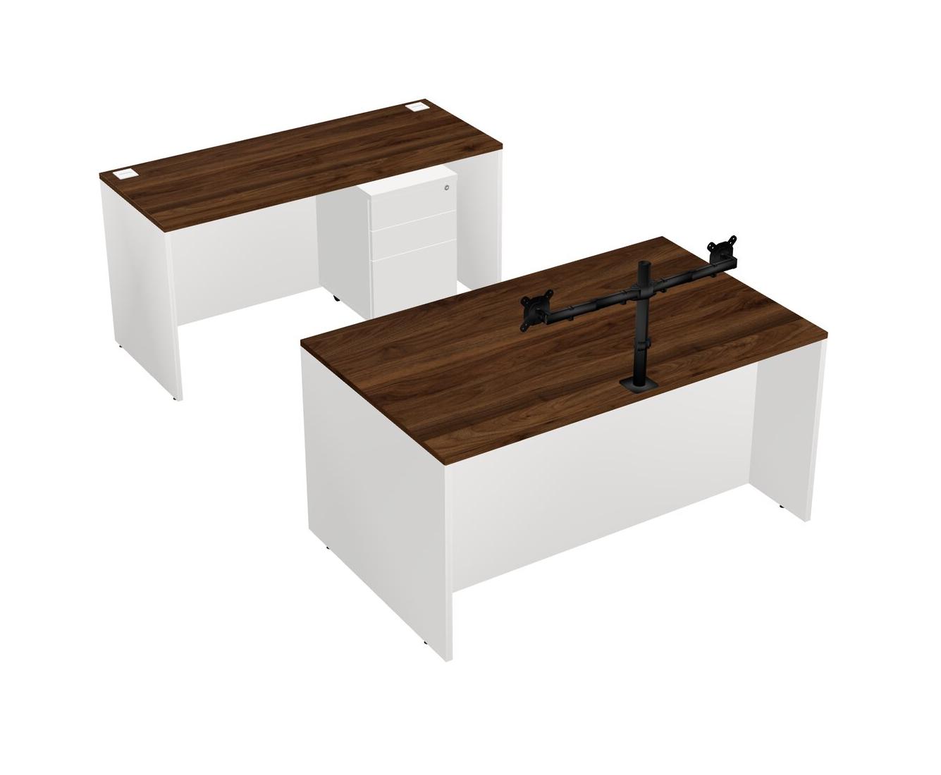 Office Parallel Desk Credenza Desk + Wooden Mobile Drawers + Monitor Arm (double Arms)
