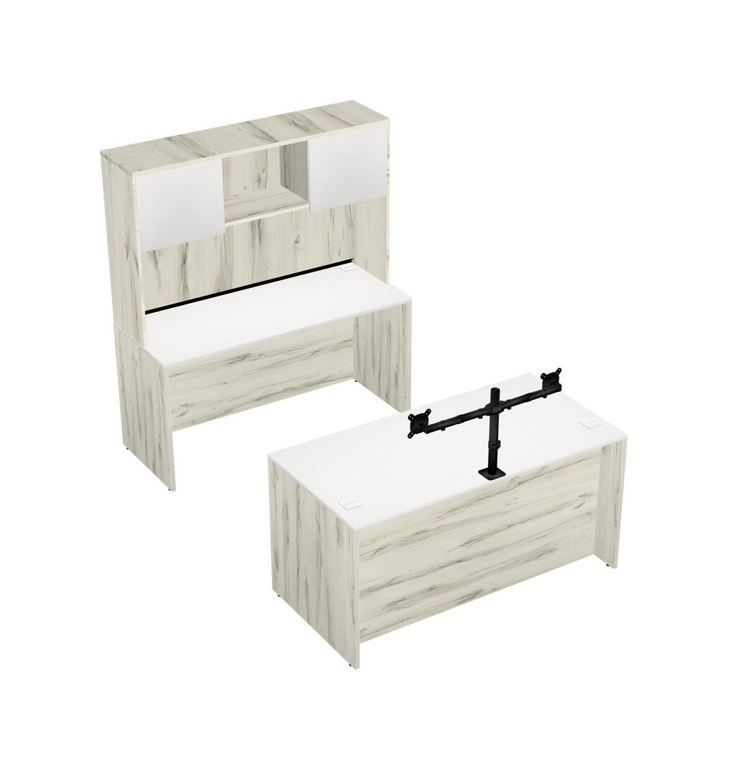Office Parallel Desk Credenza Desk + Hutch + Monitor Arm (double Arms)