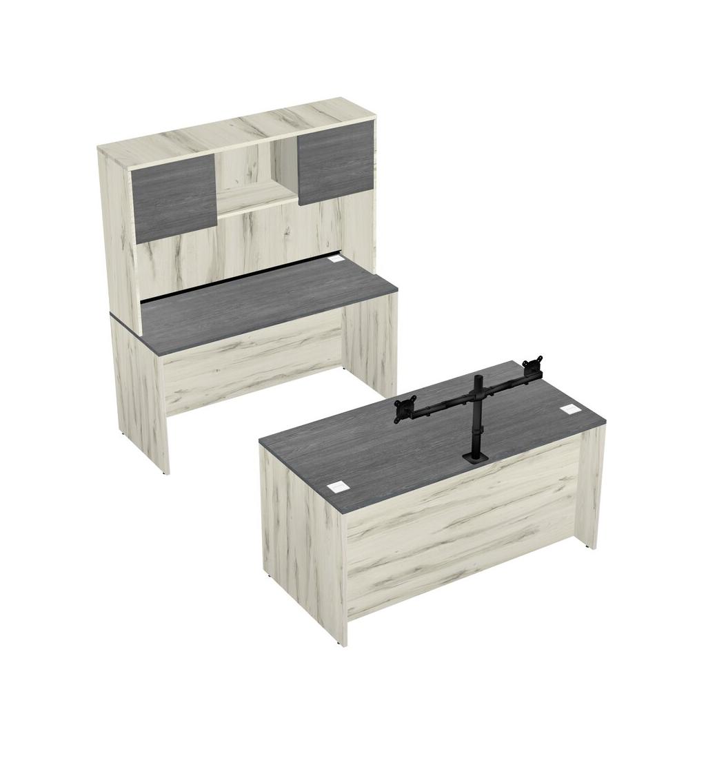 Office Parallel Desk Credenza Desk + Hutch + Monitor Arm (double Arms)