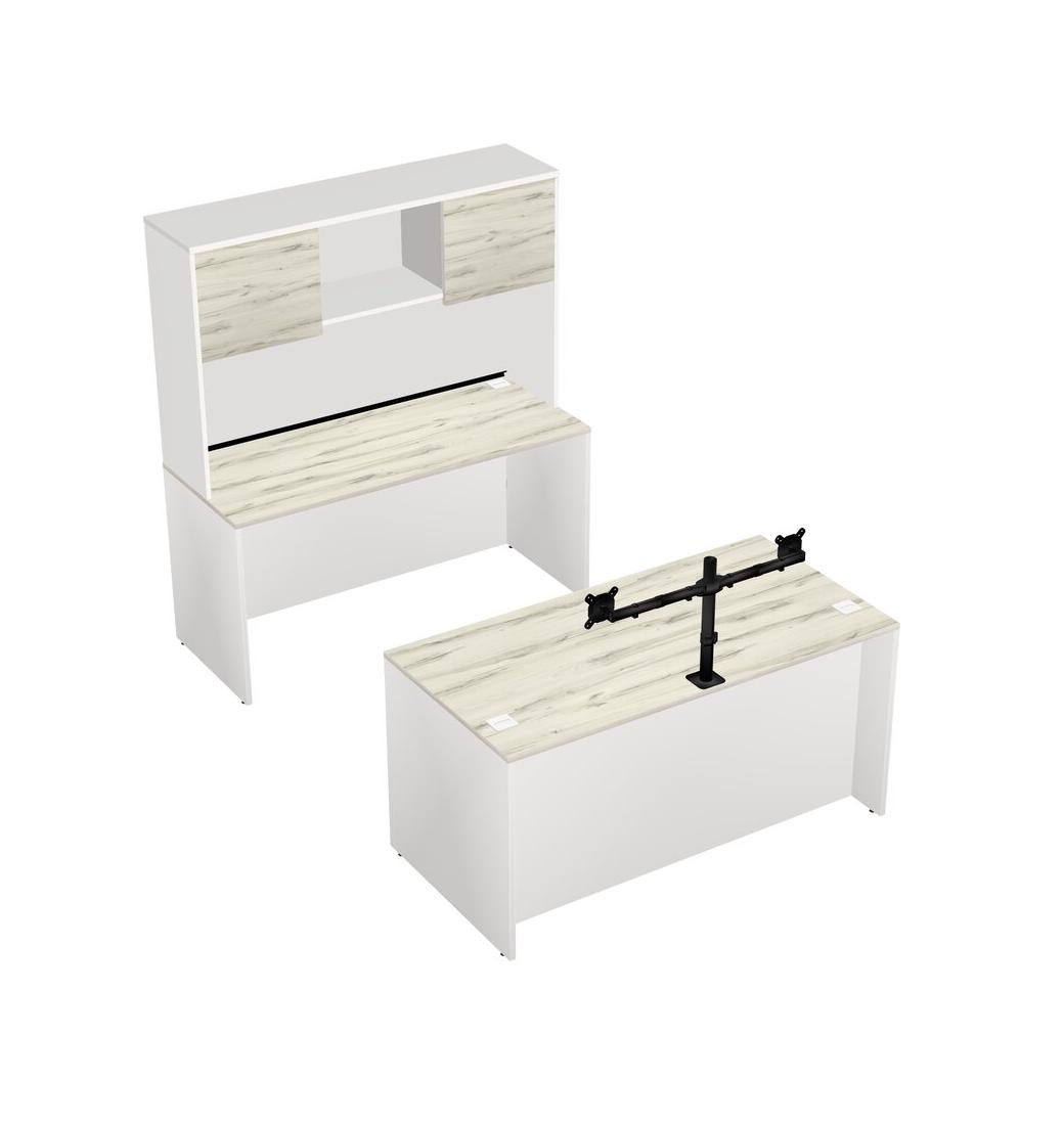 Office Parallel Desk Credenza Desk + Hutch + Monitor Arm (double Arms)