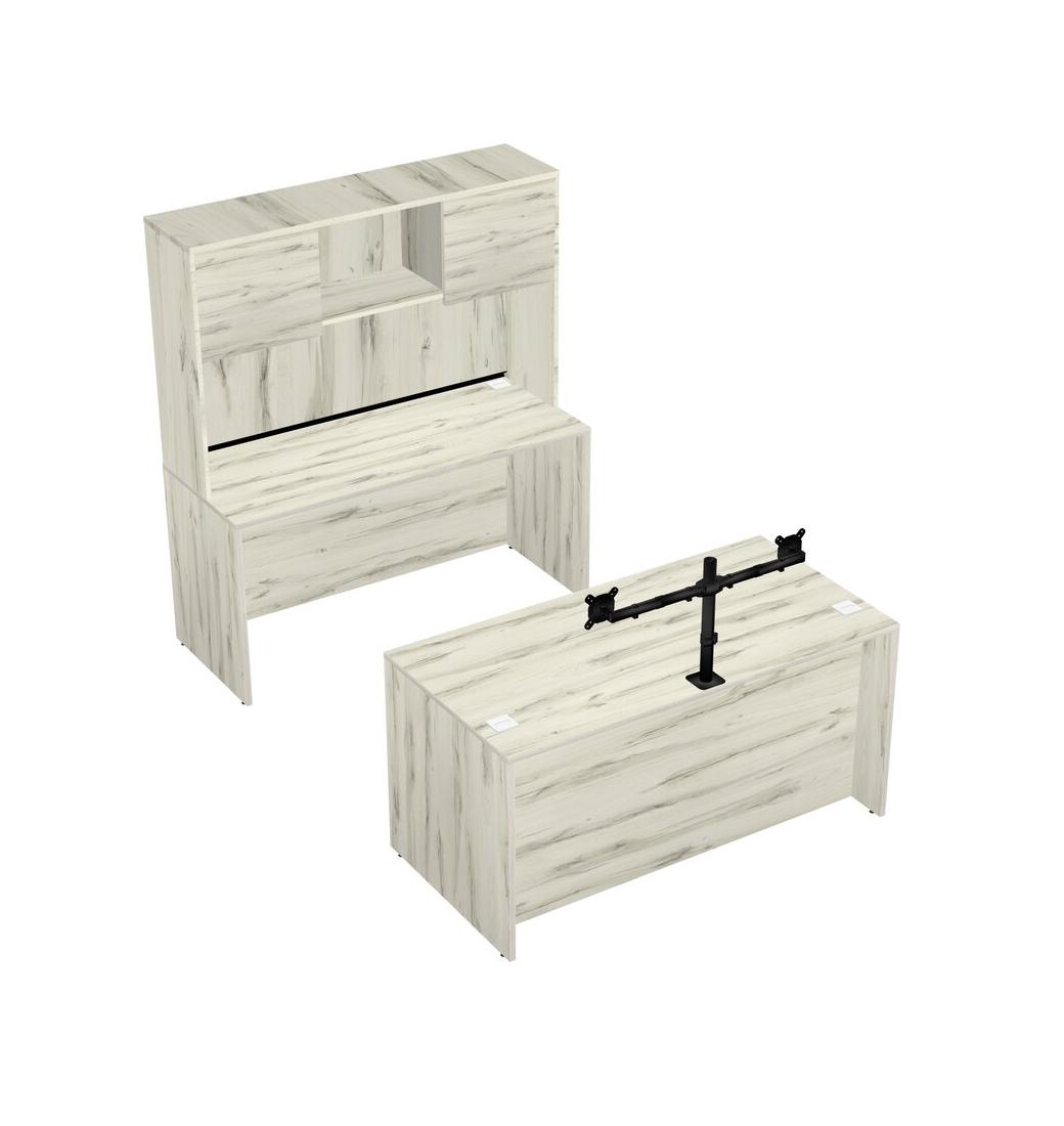 Office Parallel Desk Credenza Desk + Hutch + Monitor Arm (double Arms)