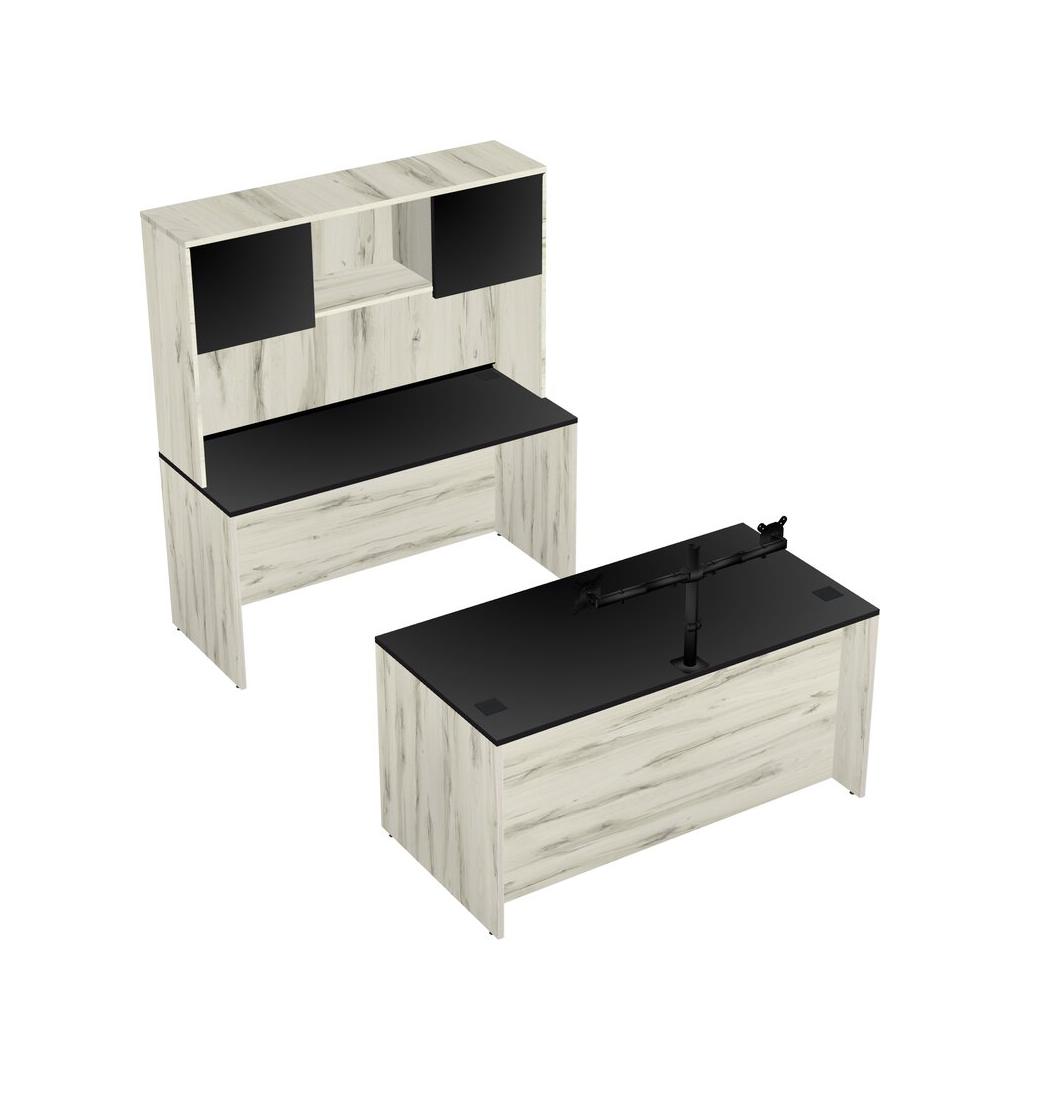 Office Parallel Desk Credenza Desk + Hutch + Monitor Arm (double Arms)