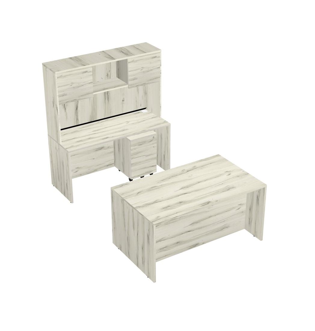 Office Parallel Desk Credenza Desk + Wooden Mobile Drawers + Hutch
