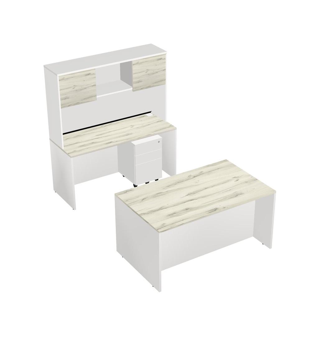 Office Parallel Desk Credenza Desk + Wooden Mobile Drawers + Hutch