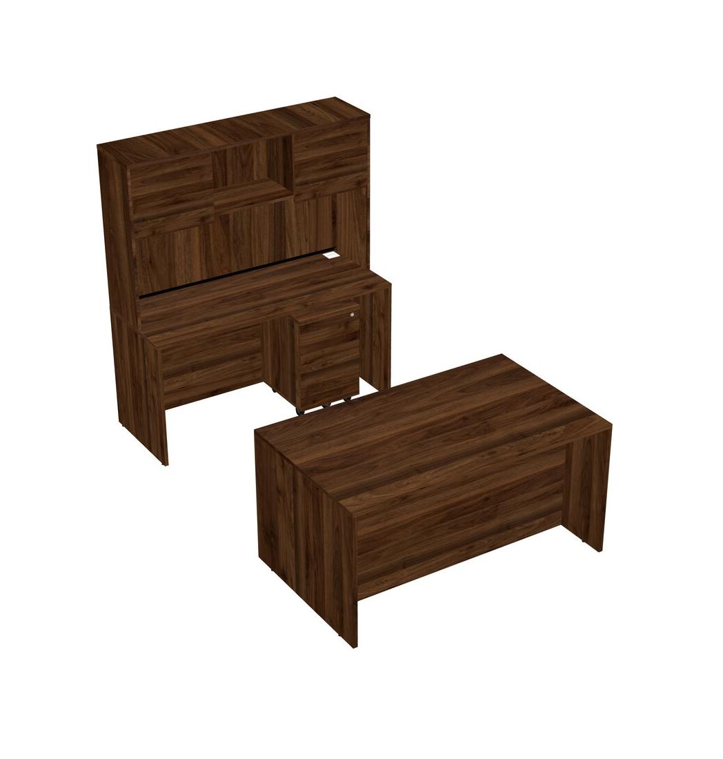 Office Parallel Desk Credenza Desk + Wooden Mobile Drawers + Hutch