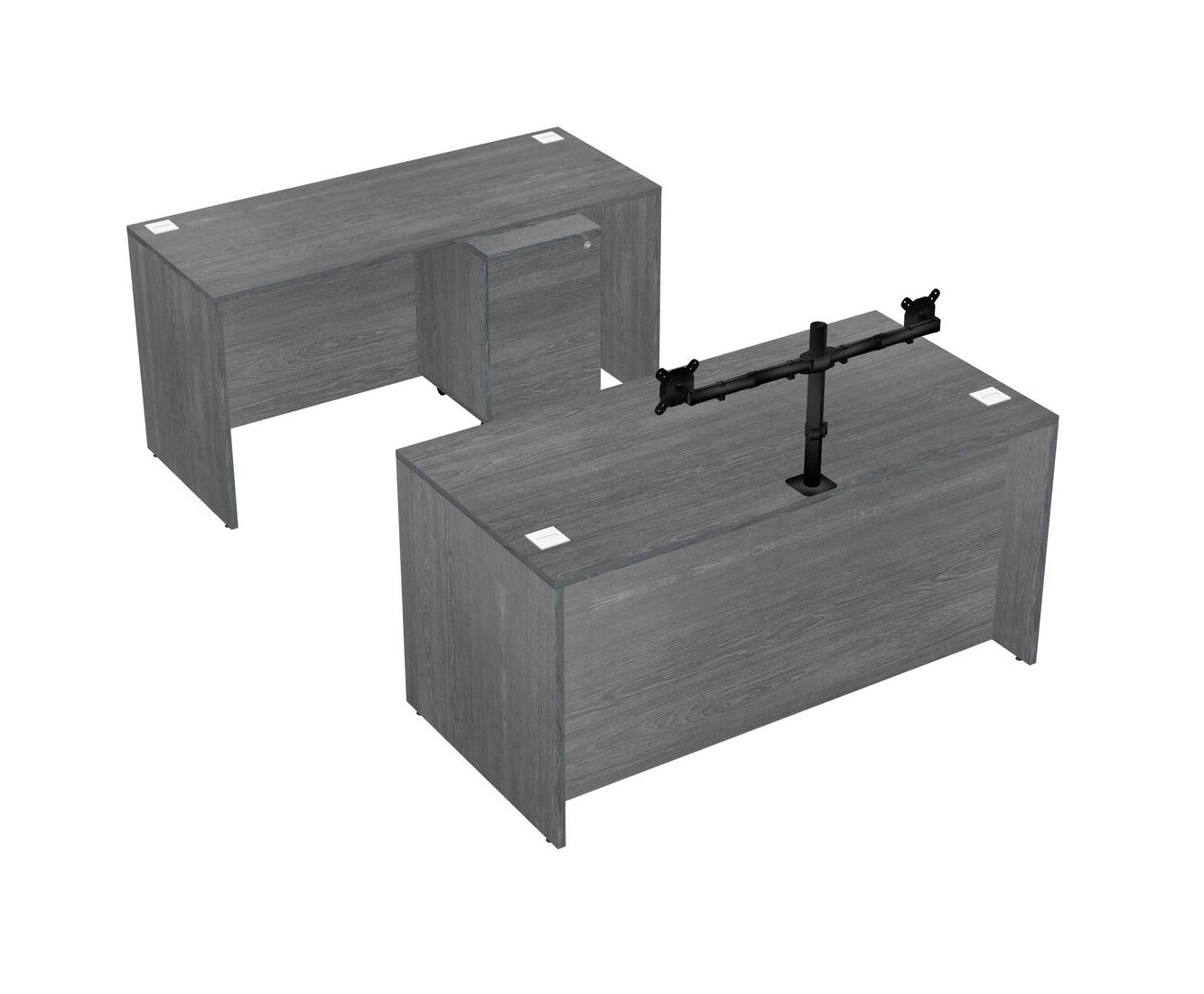Office Parallel Desk Credenza Desk + Wooden Mobile Drawers + Monitor Arm (double Arms)