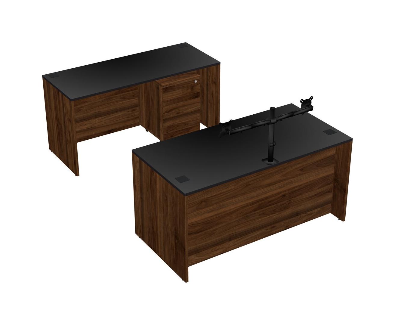 Office Parallel Desk Credenza Desk + Wooden Mobile Drawers + Monitor Arm (double Arms)