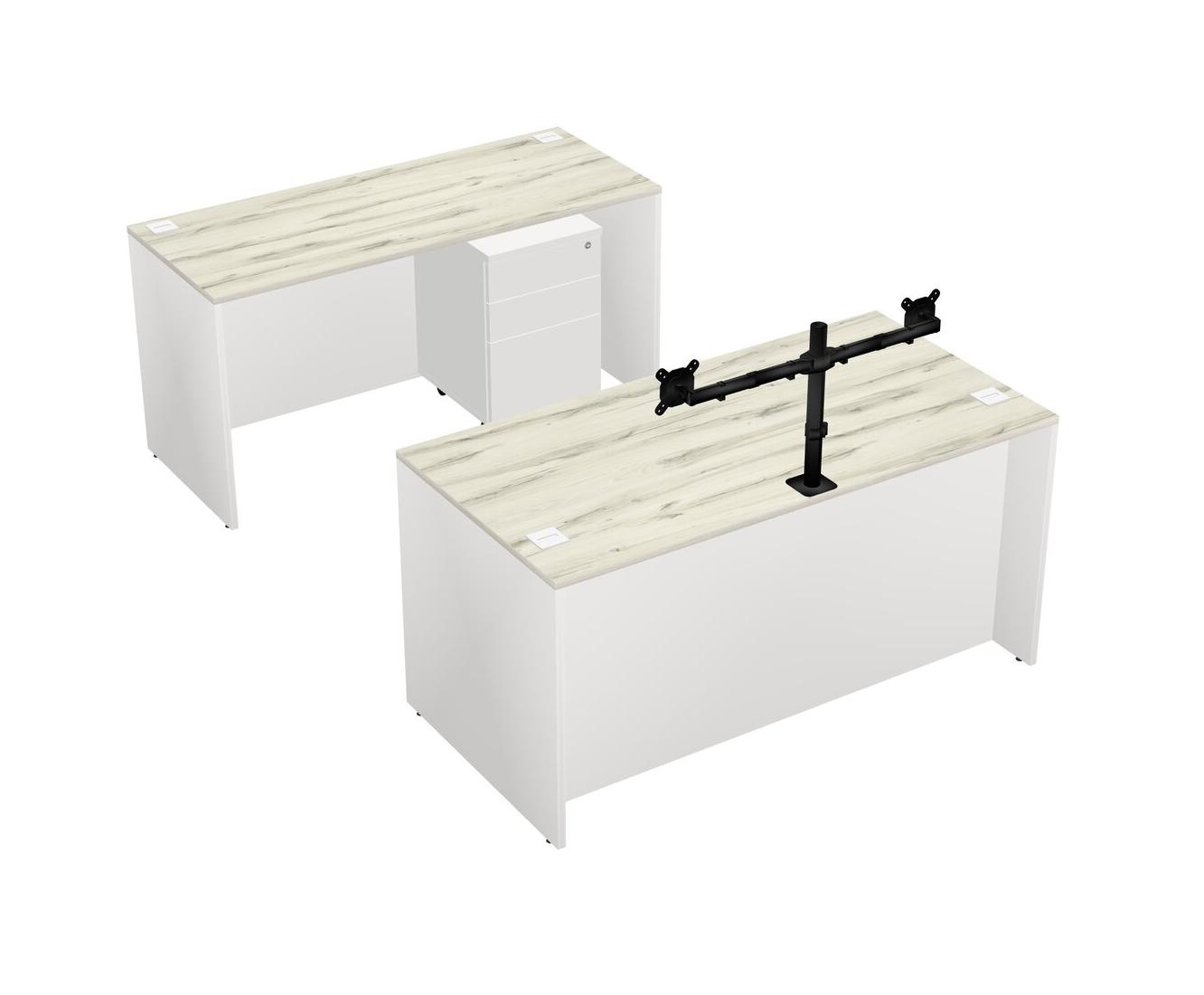 Office Parallel Desk Credenza Desk + Wooden Mobile Drawers + Monitor Arm (double Arms)