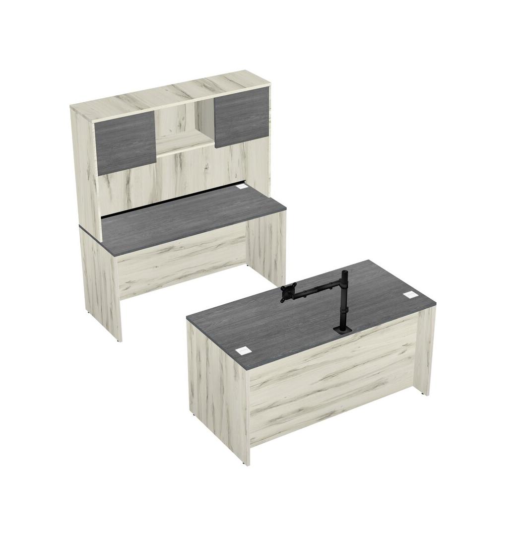 Office Parallel Desk Credenza Desk + Hutch + Monitor Arm (single Arm)