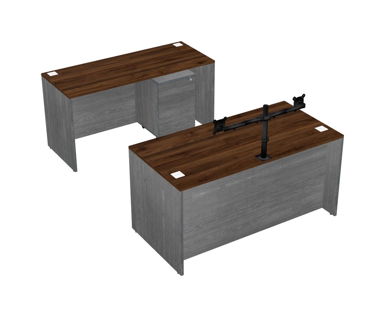 Office Parallel Desk Credenza Desk + Wooden Mobile Drawers + Monitor Arm (double Arms)