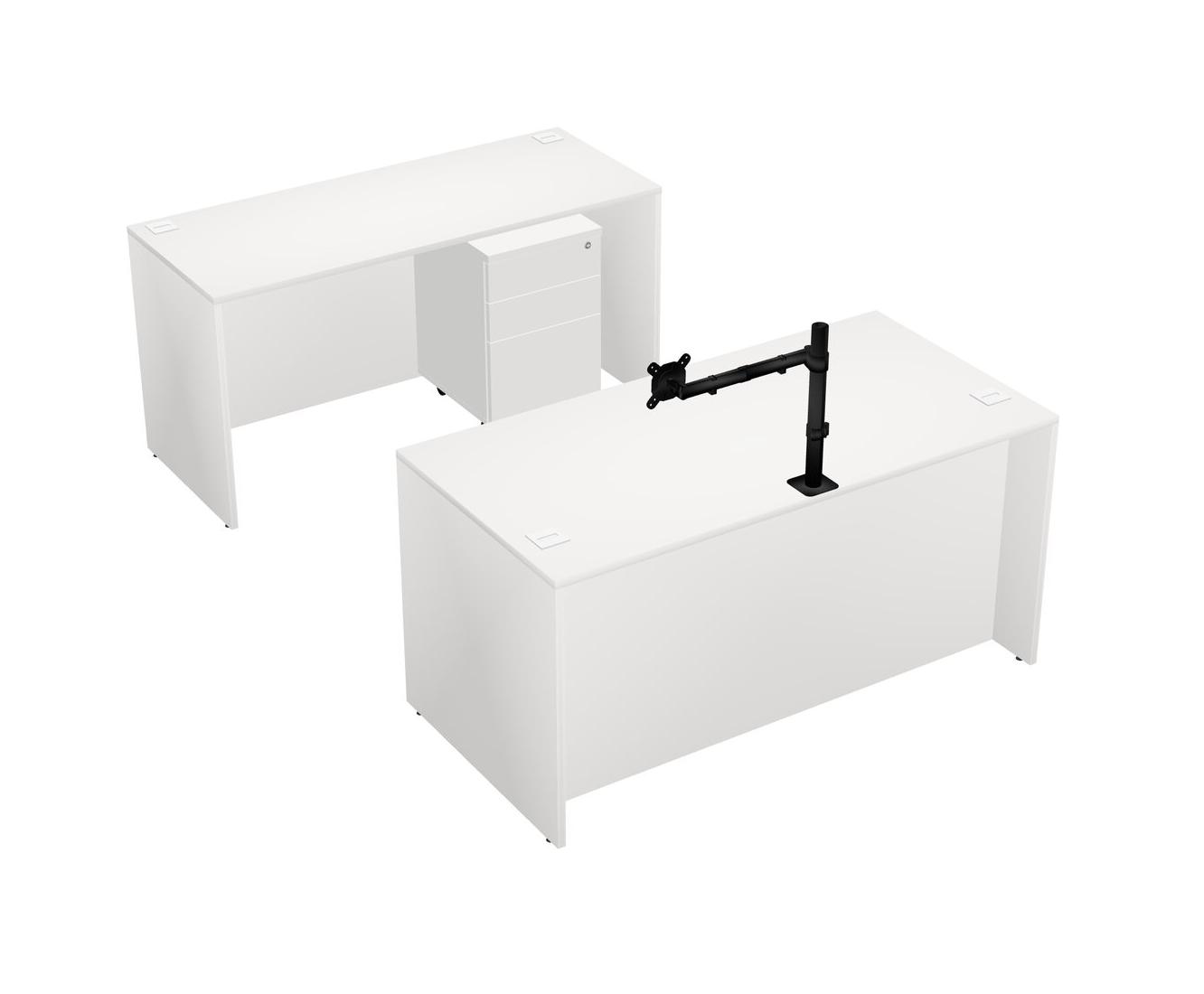 Office Parallel Desk Credenza Desk + Wooden Mobile Drawers + Monitor Arm (single Arm)