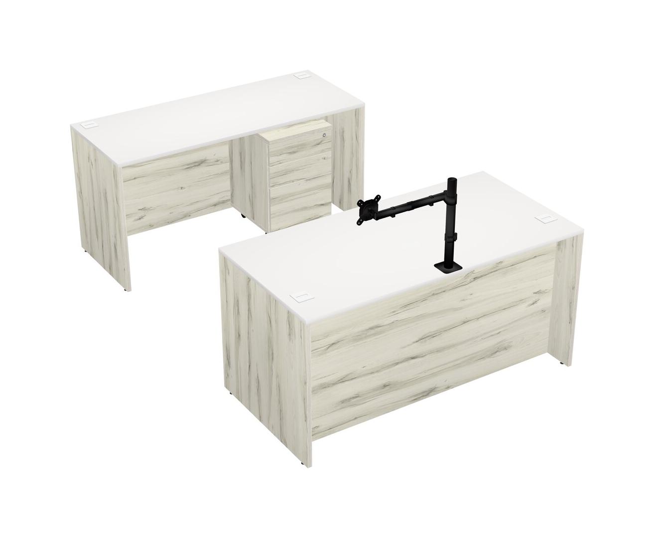 Office Parallel Desk Credenza Desk + Wooden Mobile Drawers + Monitor Arm (single Arm)