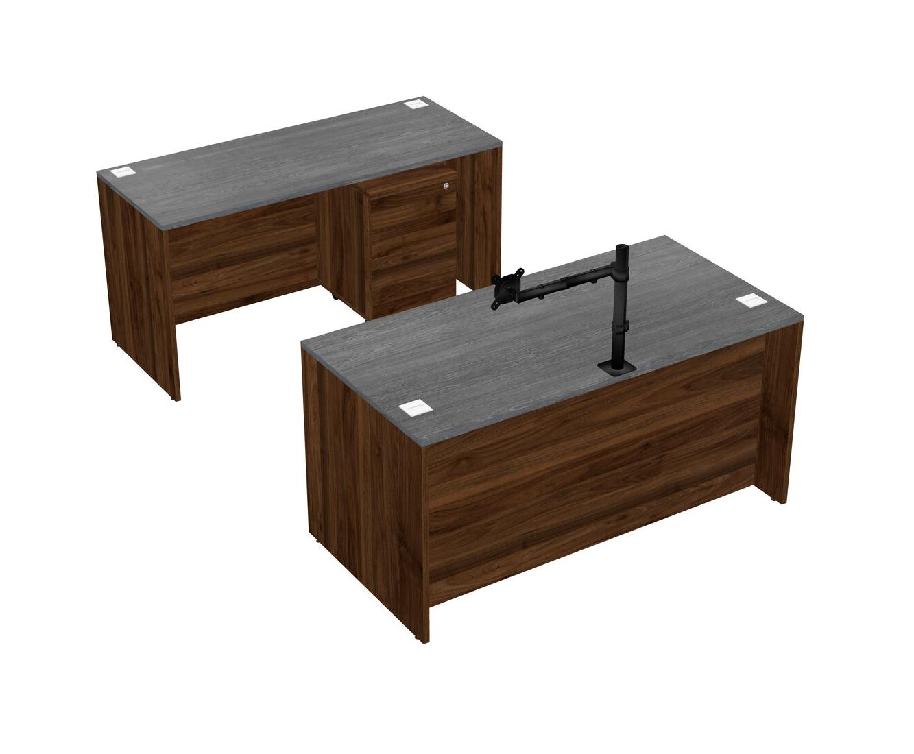 Office Parallel Desk Credenza Desk + Wooden Mobile Drawers + Monitor Arm (single Arm)