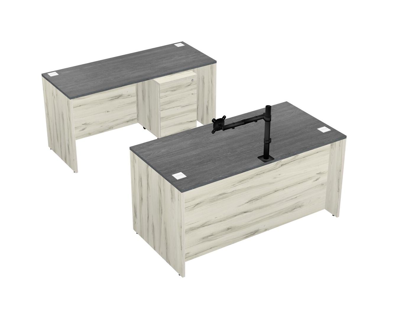 Office Parallel Desk Credenza Desk + Wooden Mobile Drawers + Monitor Arm (single Arm)