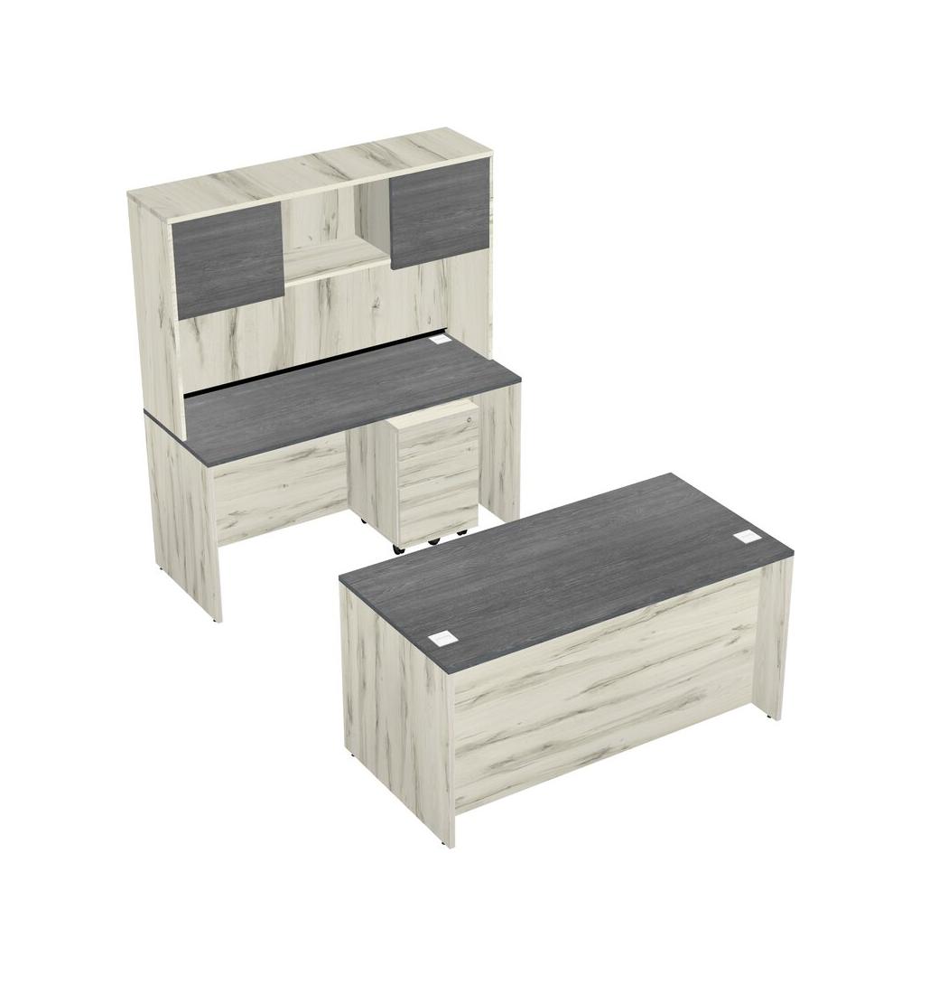 Office Parallel Desk Credenza Desk + Wooden Mobile Drawers + Hutch
