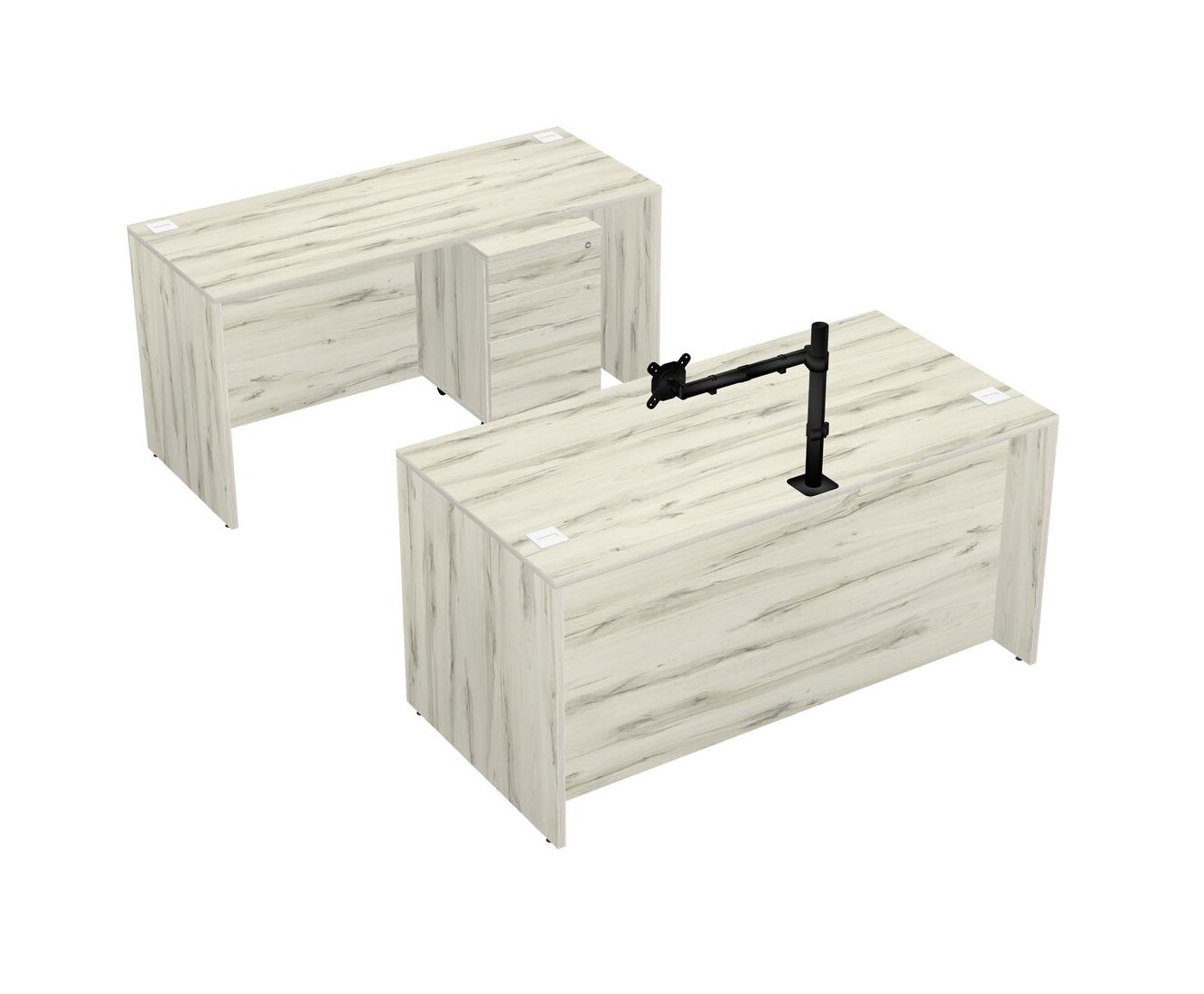 Office Parallel Desk Credenza Desk + Wooden Mobile Drawers + Monitor Arm (single Arm)