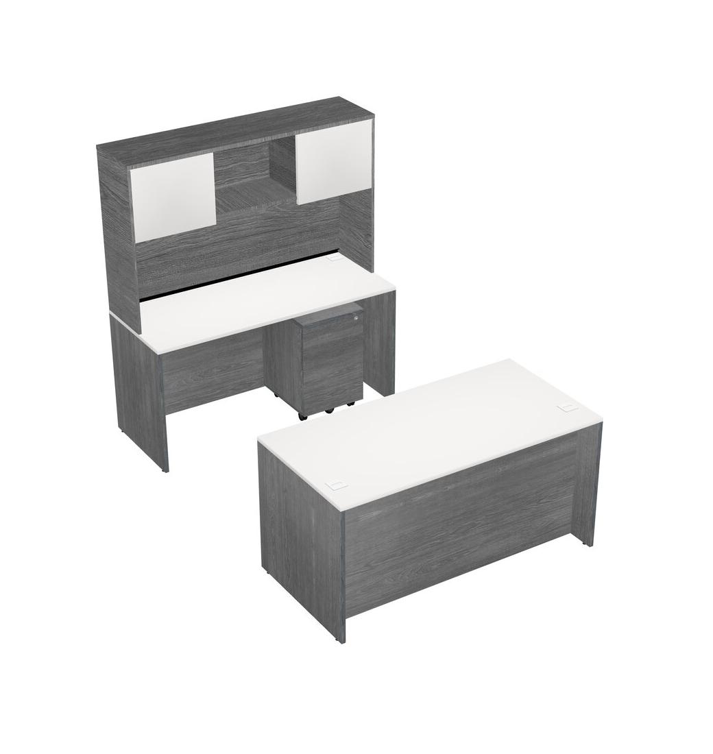 Office Parallel Desk Credenza Desk + Wooden Mobile Drawers + Hutch
