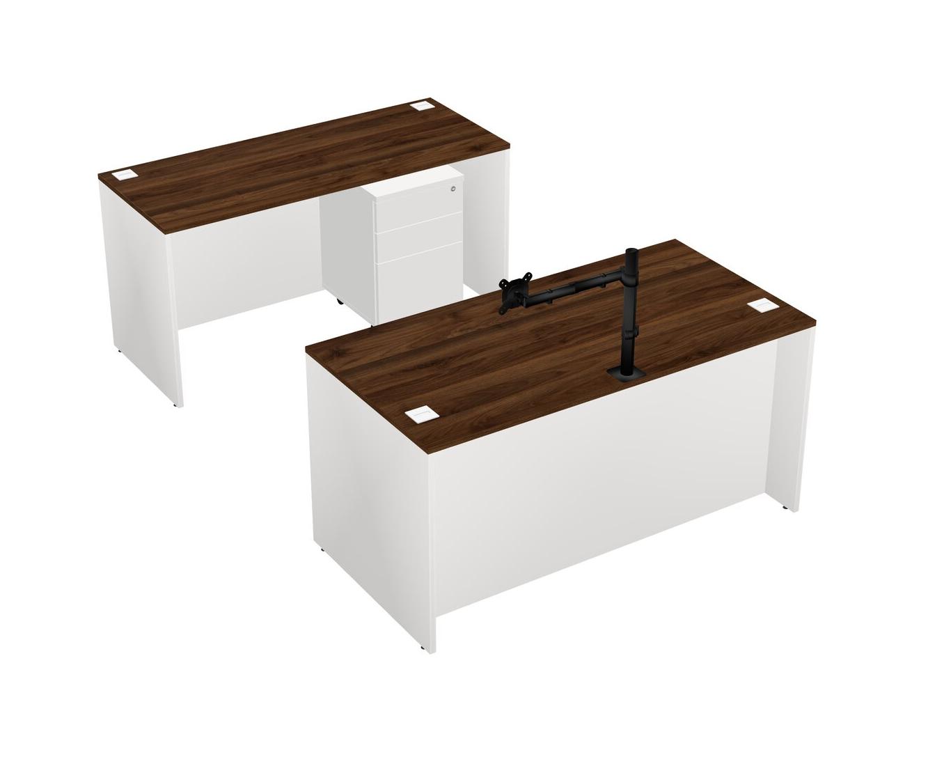 Office Parallel Desk Credenza Desk + Wooden Mobile Drawers + Monitor Arm (single Arm)