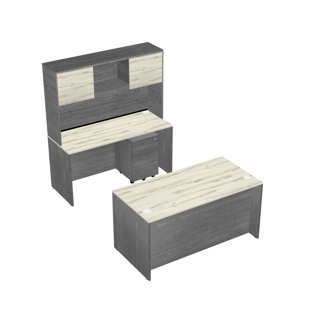 Office Parallel Desk Credenza Desk + Wooden Mobile Drawers + Hutch
